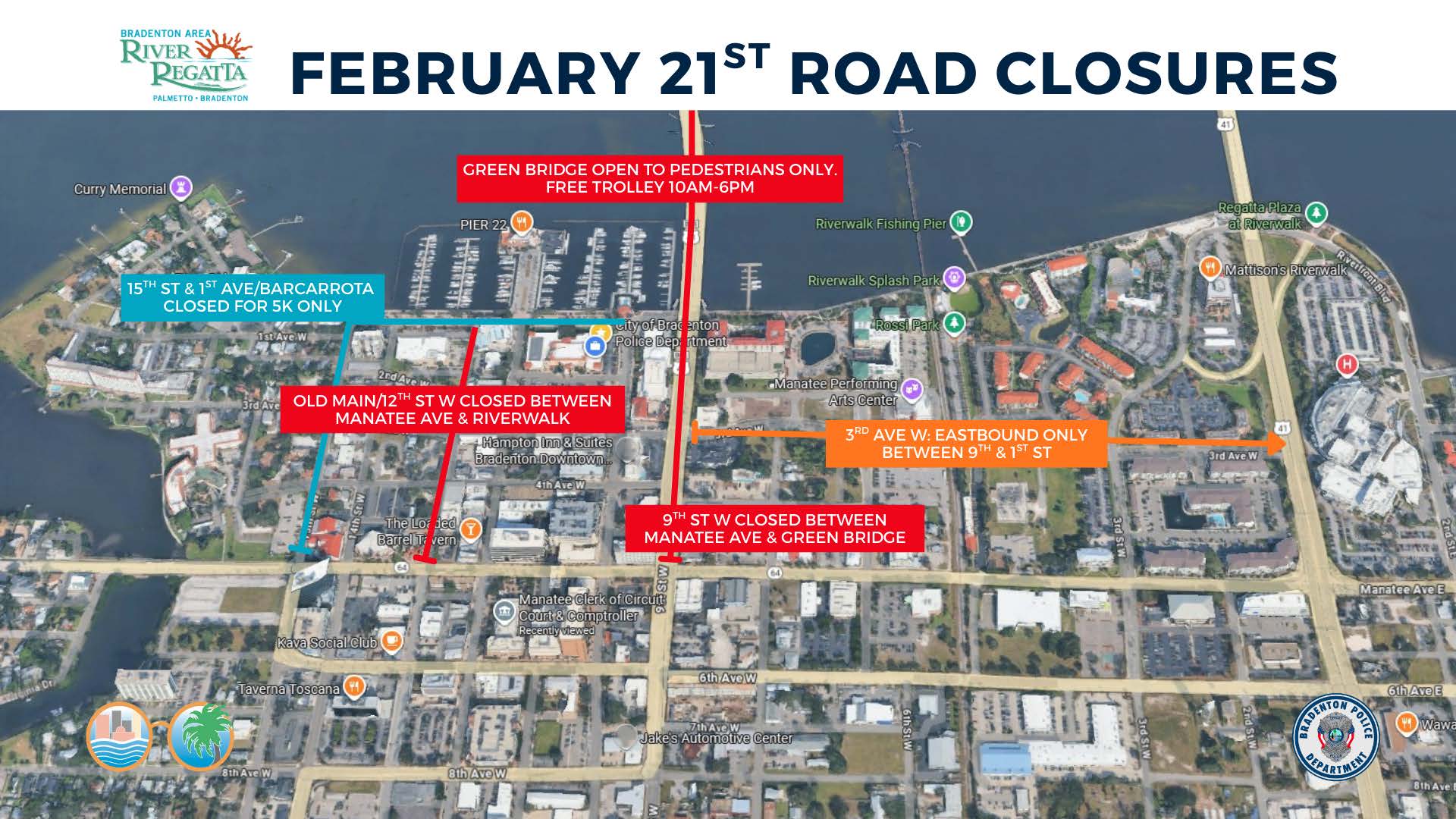 - 12th St. W. (Old Main) — between Manatee Ave & 1st Ave W / Barcarrota Blvd