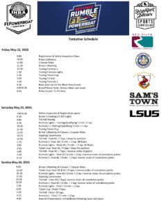 This is a promotional event schedule document for the 2026 IHRA F1 Powerboat Championship race in Shreveport, Louisiana. (Note: the PDF extracted as text only — no visual layout, logos, or sponsor graphics were retrievable, so this description is based solely on the schedule content.)